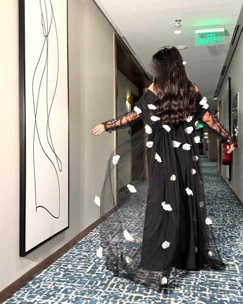 فستان اسود فخم باربي مع تل مورد